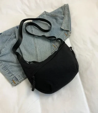 Minimalist Solid Color Canvas Shoulder Bag – Unisex Trendy Dumpling-Style Tote
