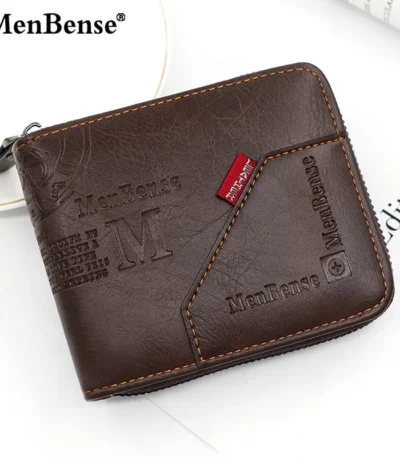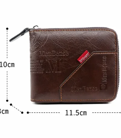 Men Zipper Wallet – PU Leather Vintage Short Wallet