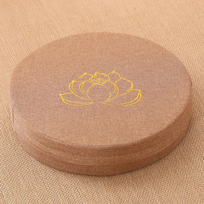 Hard lotus-texture meditation cushion with linen cover, removable & washable. Perfect for yoga, meditation, tatami mats, and floor seating.