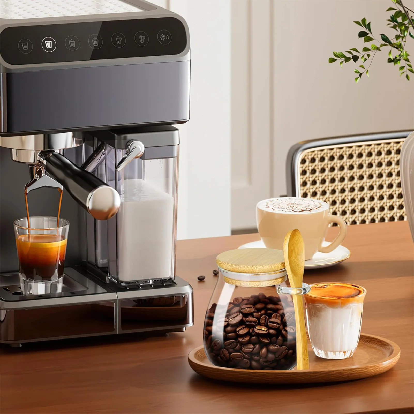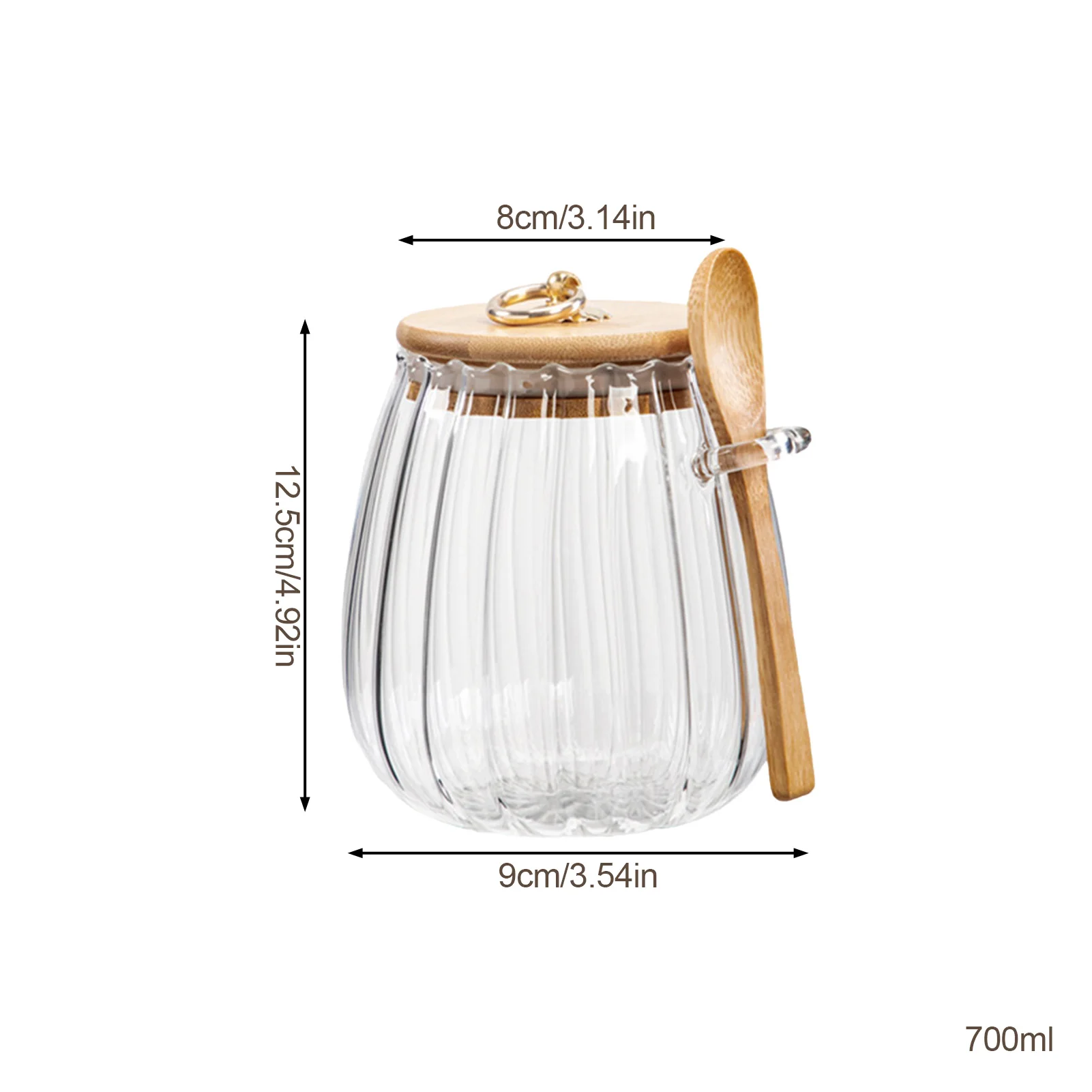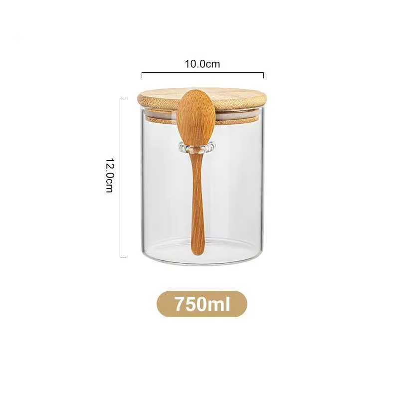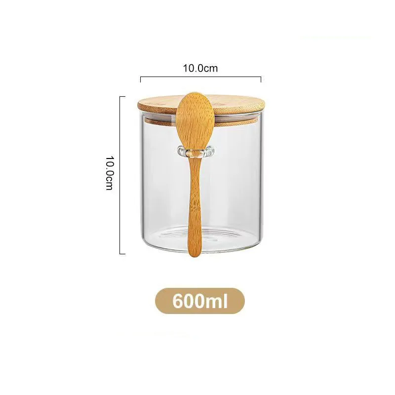 Glass airtight storage jar for kitchen organization. Ideal for sugar, tea, coffee, spices, and dry ingredients with included spoon.