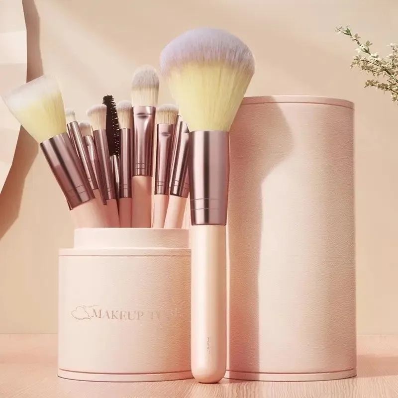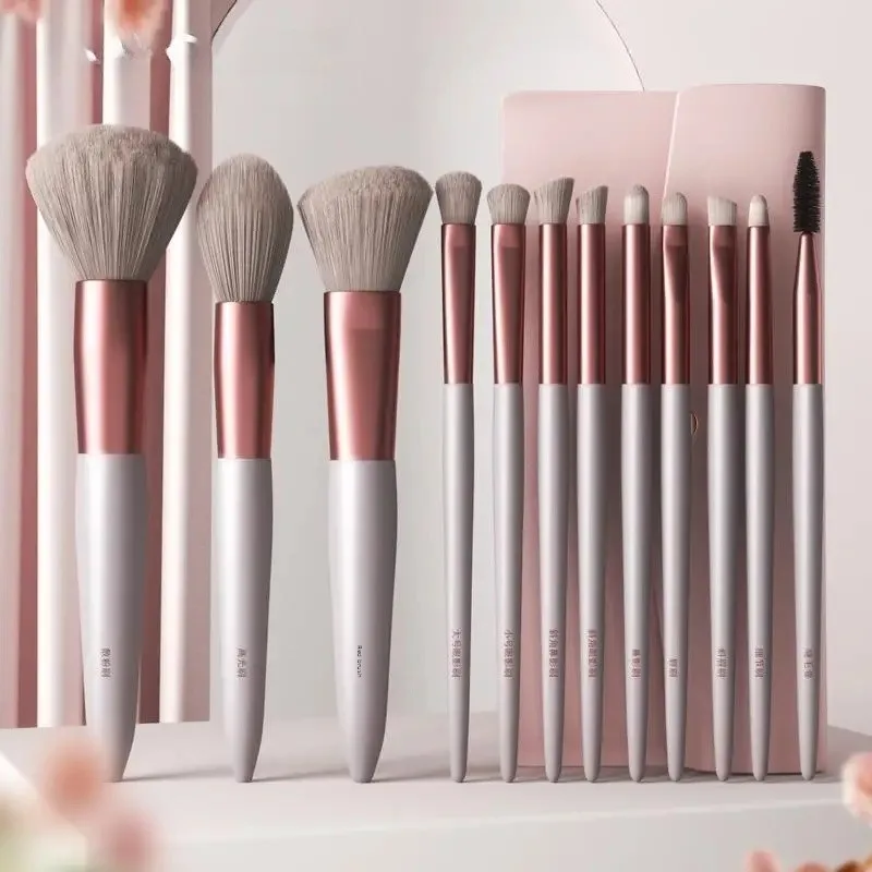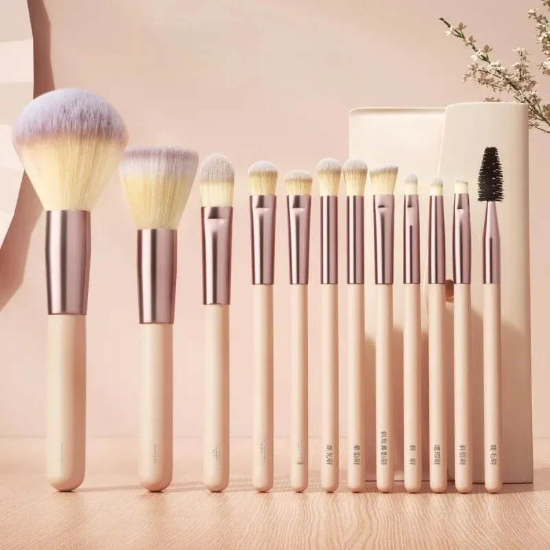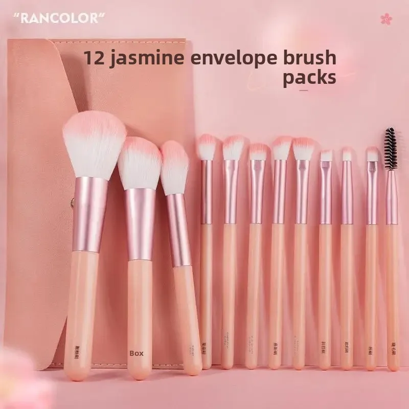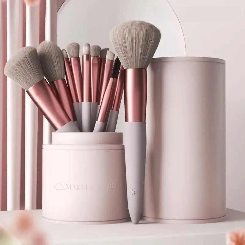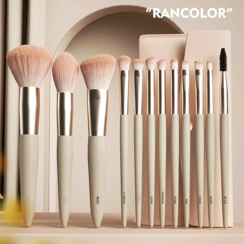 Soft bristle brush set for beginners, perfect for applying blush, loose powder, and foundation with ease and precision.