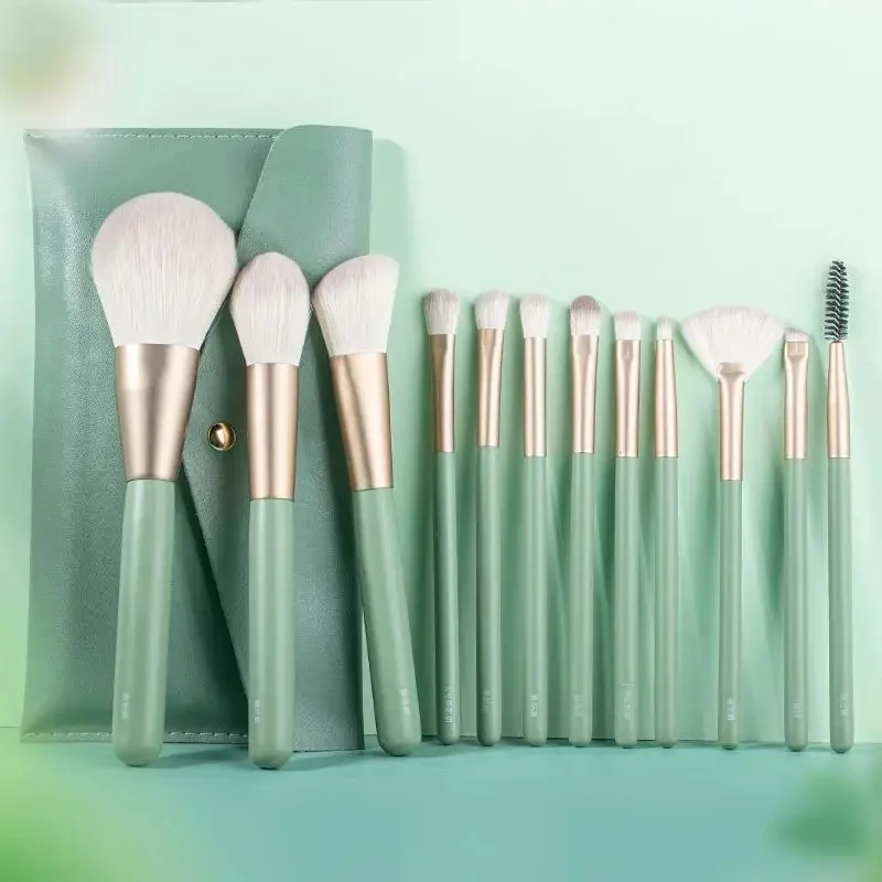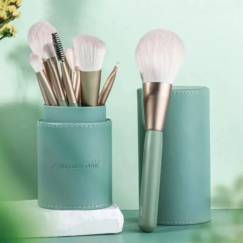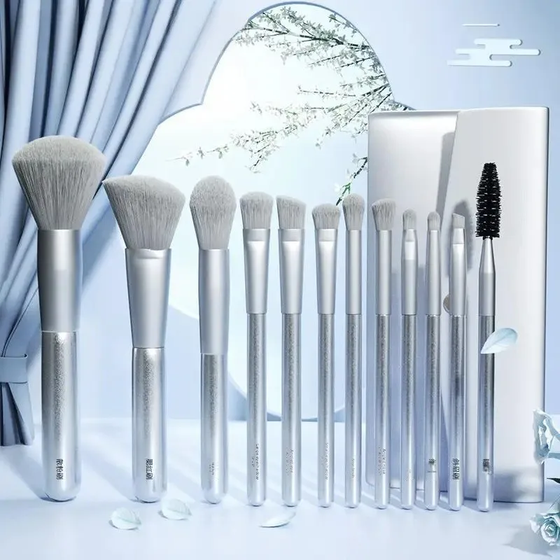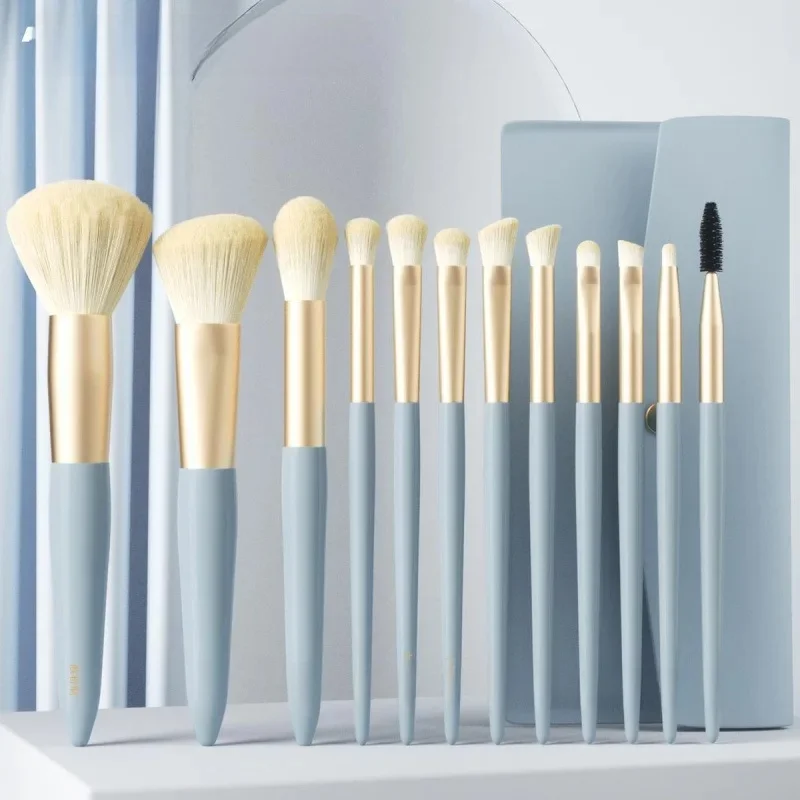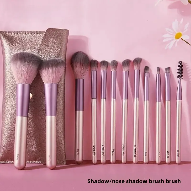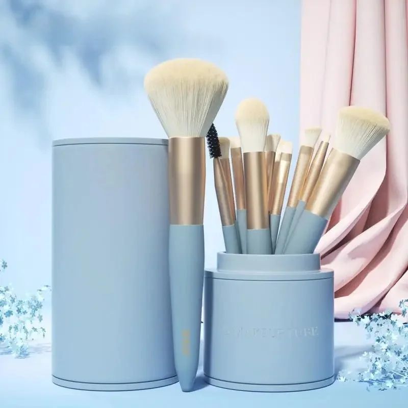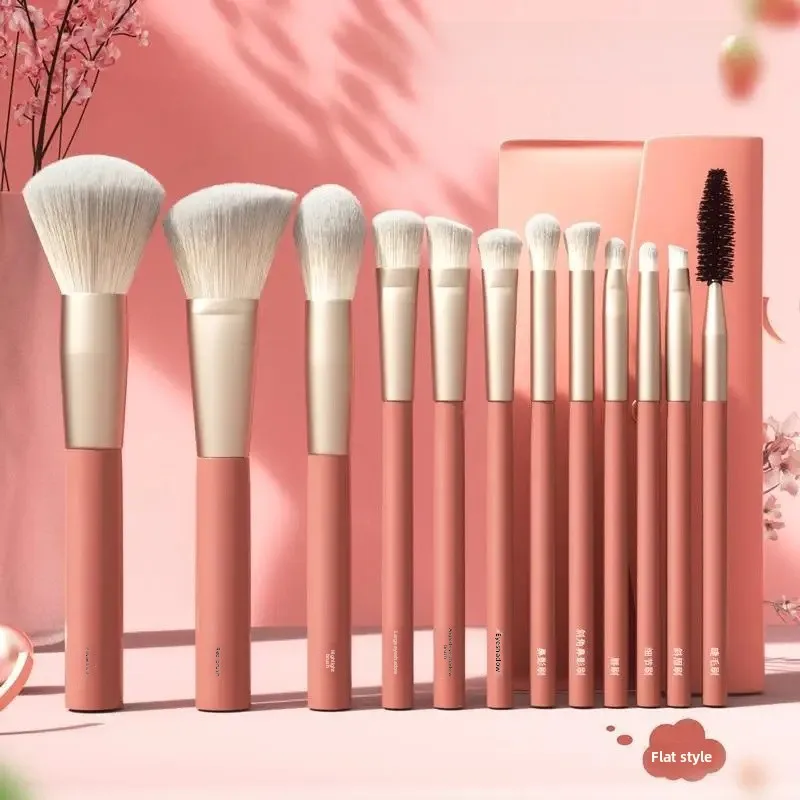 Soft bristle brush set for beginners, perfect for applying blush, loose powder, and foundation with ease and precision.