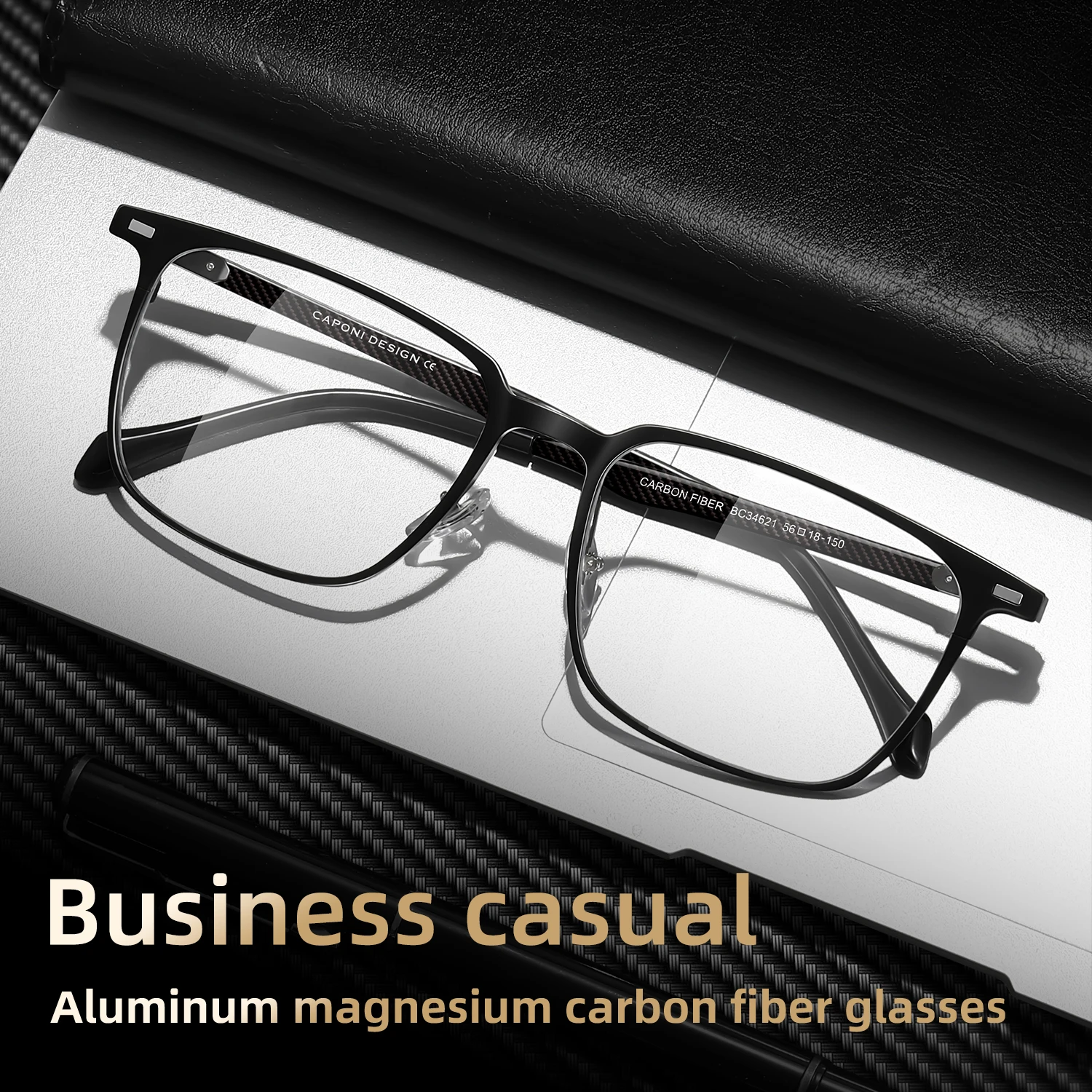 CAPONI Carbon Fiber Men Eyeglasses Frame J34621