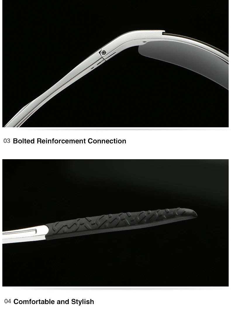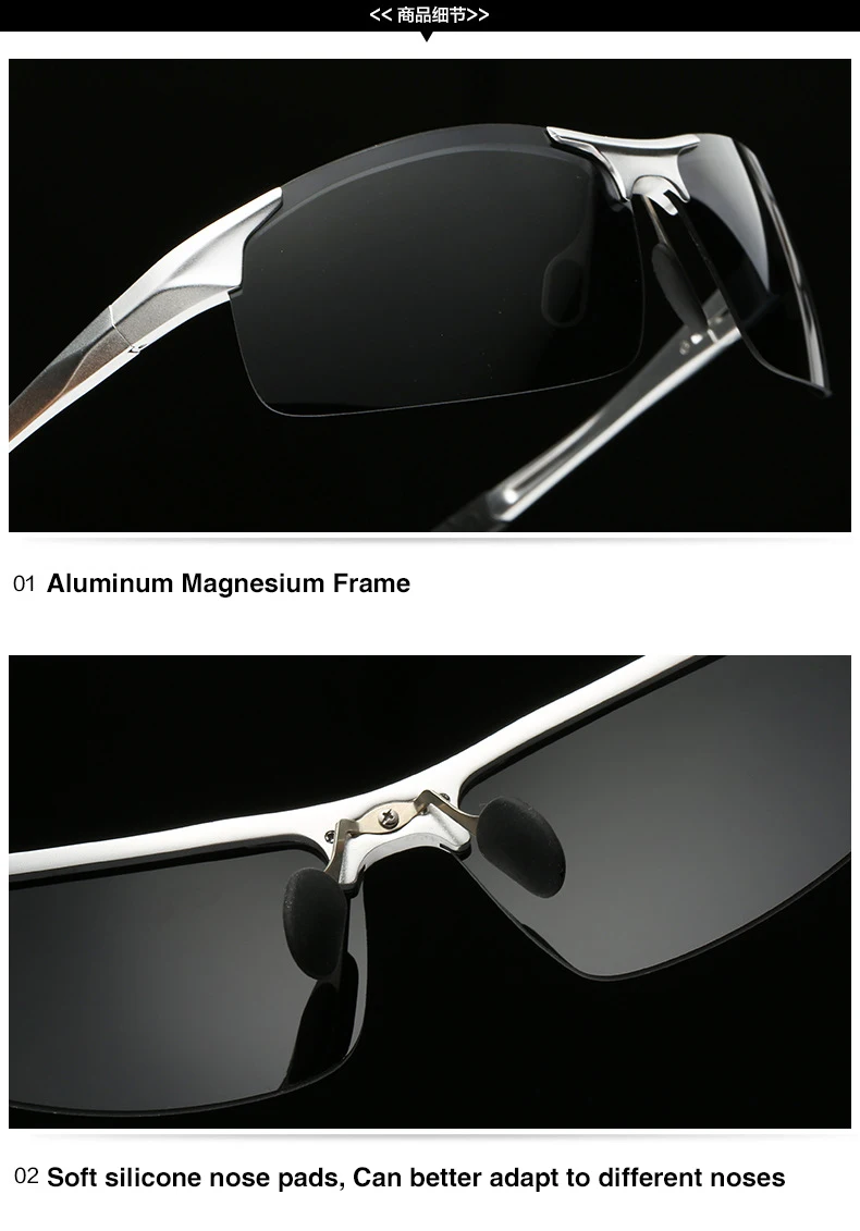 Lightweight and durable polarized sunglasses with aluminum-magnesium frame, UV400 protection, and anti-glare lenses, perfect for driving and outdoor sports.