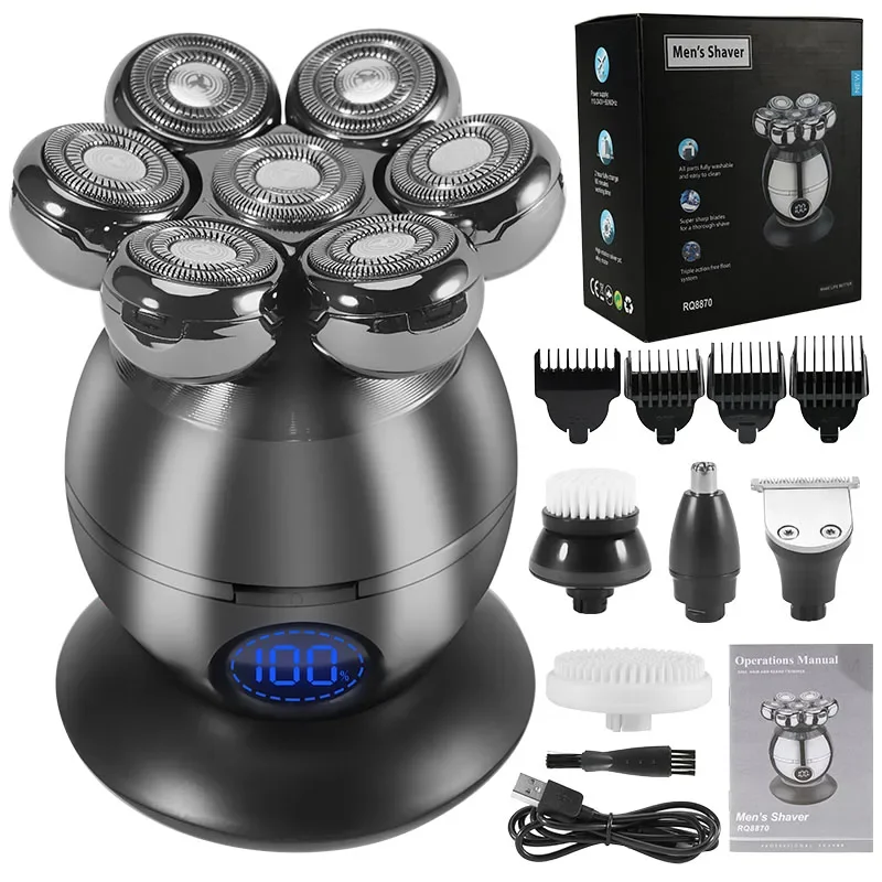 Electric Shaver 7D Floating Head – 6-in-1 Rechargeable Beard & Bald Trimmer