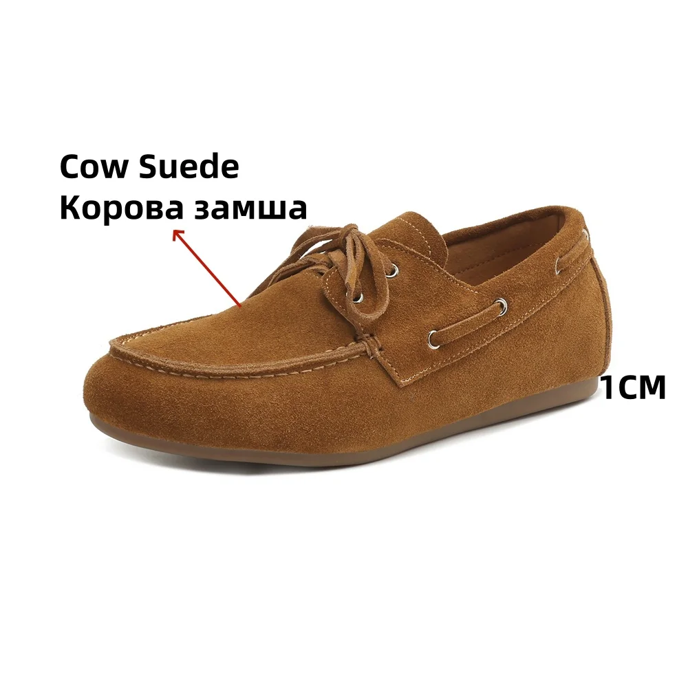 Comfortable women’s slip-on loafers with round toe design. Suede leather upper, breathable PU lining, and durable rubber sole for casual spring/autumn wear.