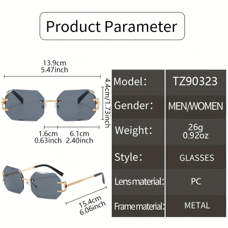 Frameless Retro Metal Sunglasses for Men & Women