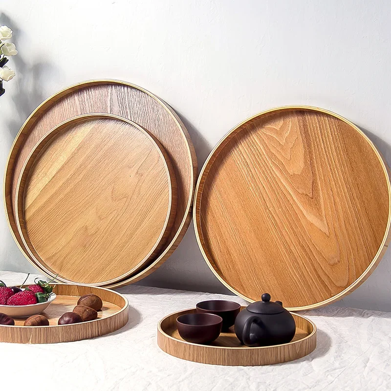 Japanese Style Wooden Round Tray – Food & Dessert Plate