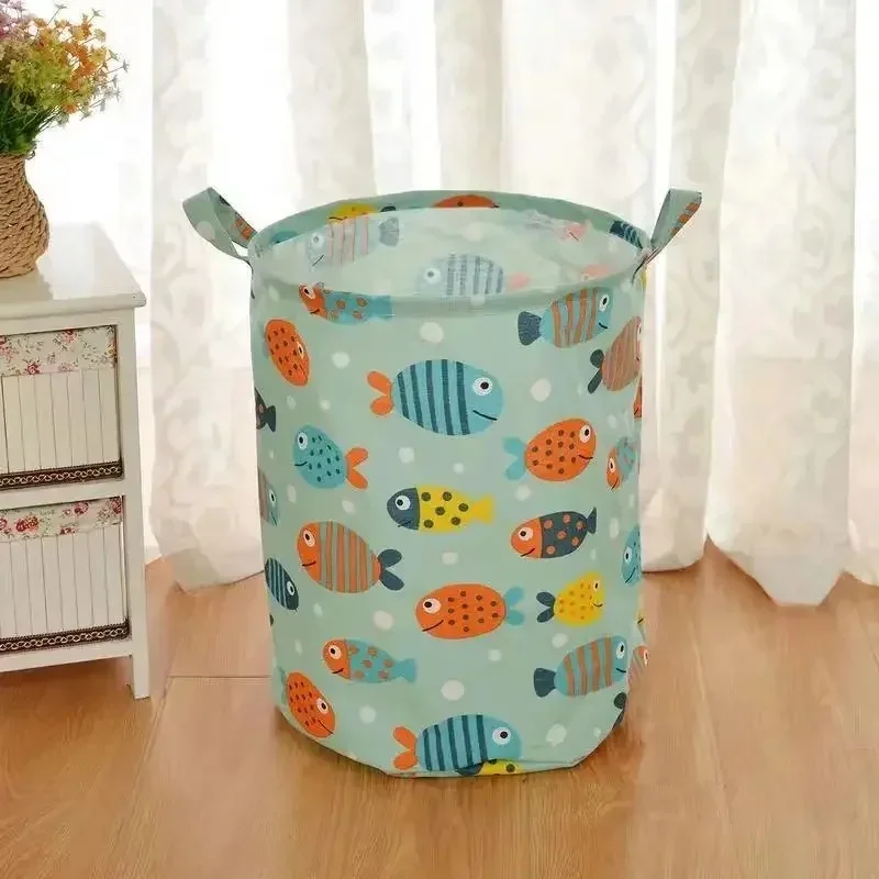 Foldable, large-capacity cotton laundry basket with handles for bathroom, bedroom, or toy storage. Waterproof and portable.