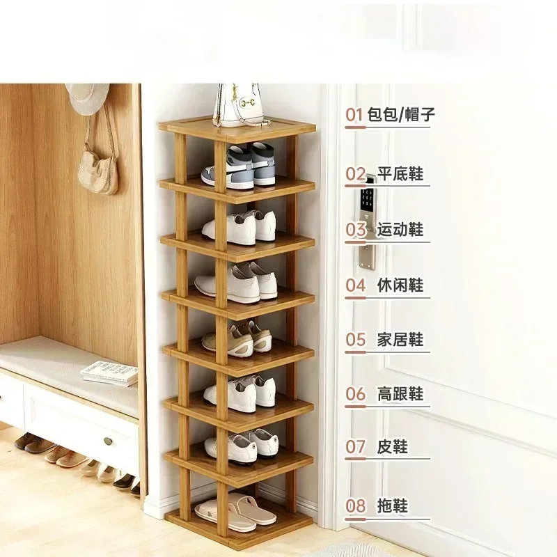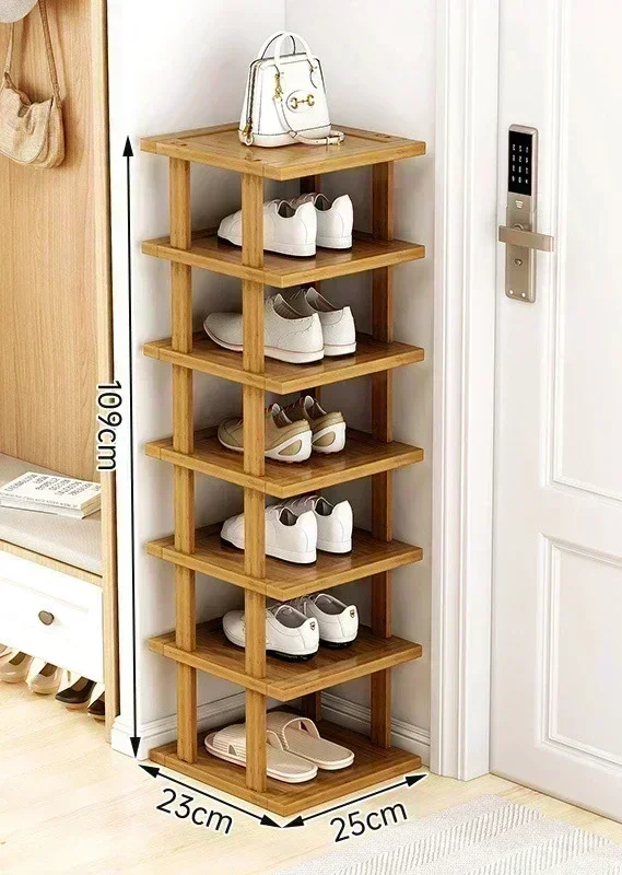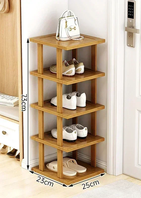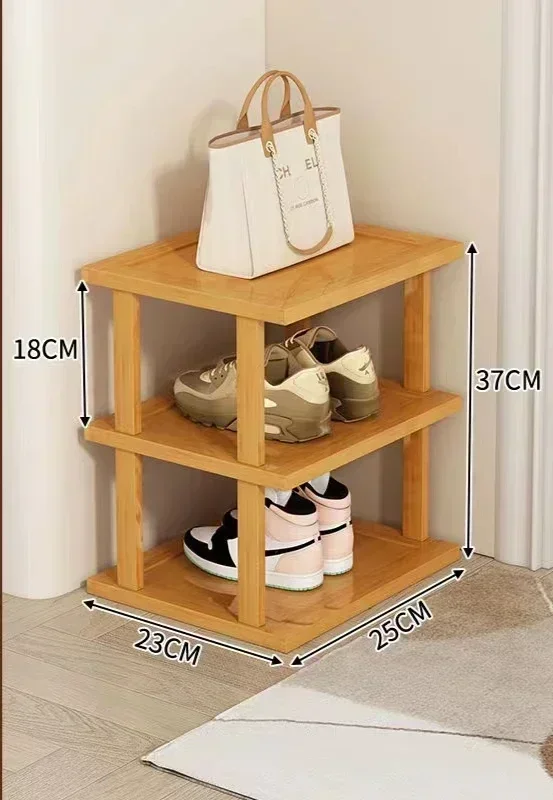 Minimalist multi-layer bamboo shoe rack for household doorstep or corner storage. Perfect for organizing shoes in small spaces.