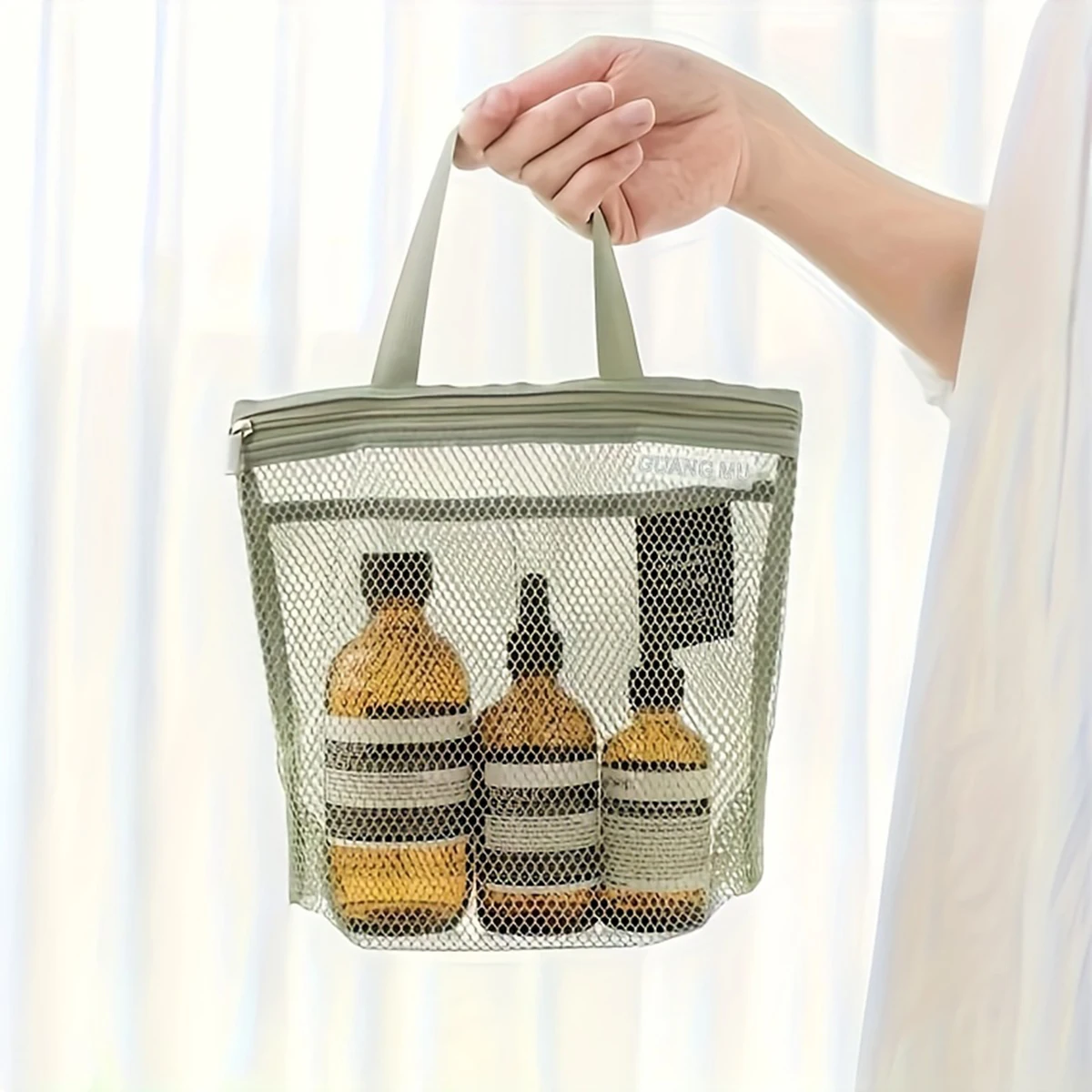 Lightweight and foldable mesh waterproof bag for travel, gym, or daily use. Keeps cosmetics and toiletries organized and easy to carry.
