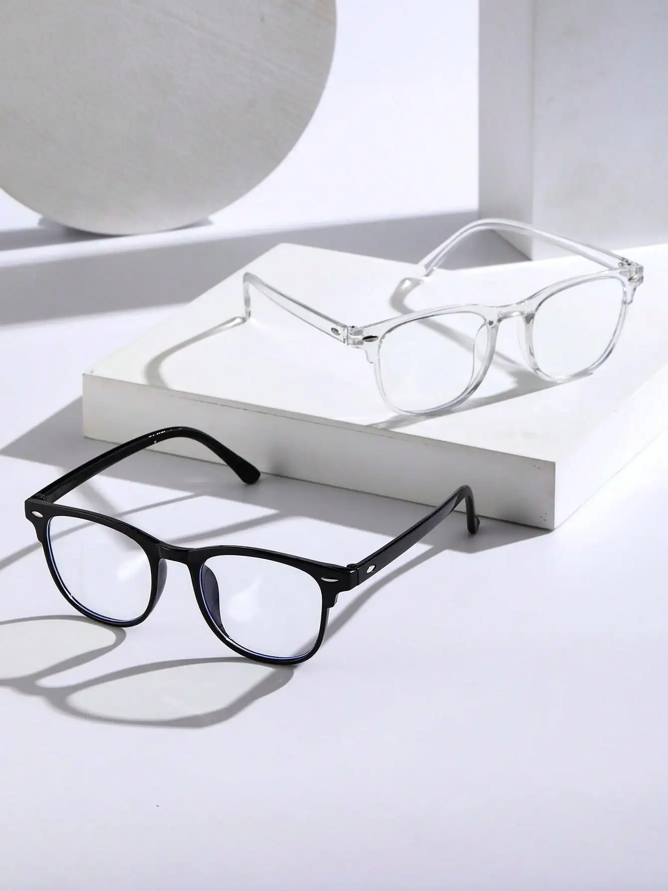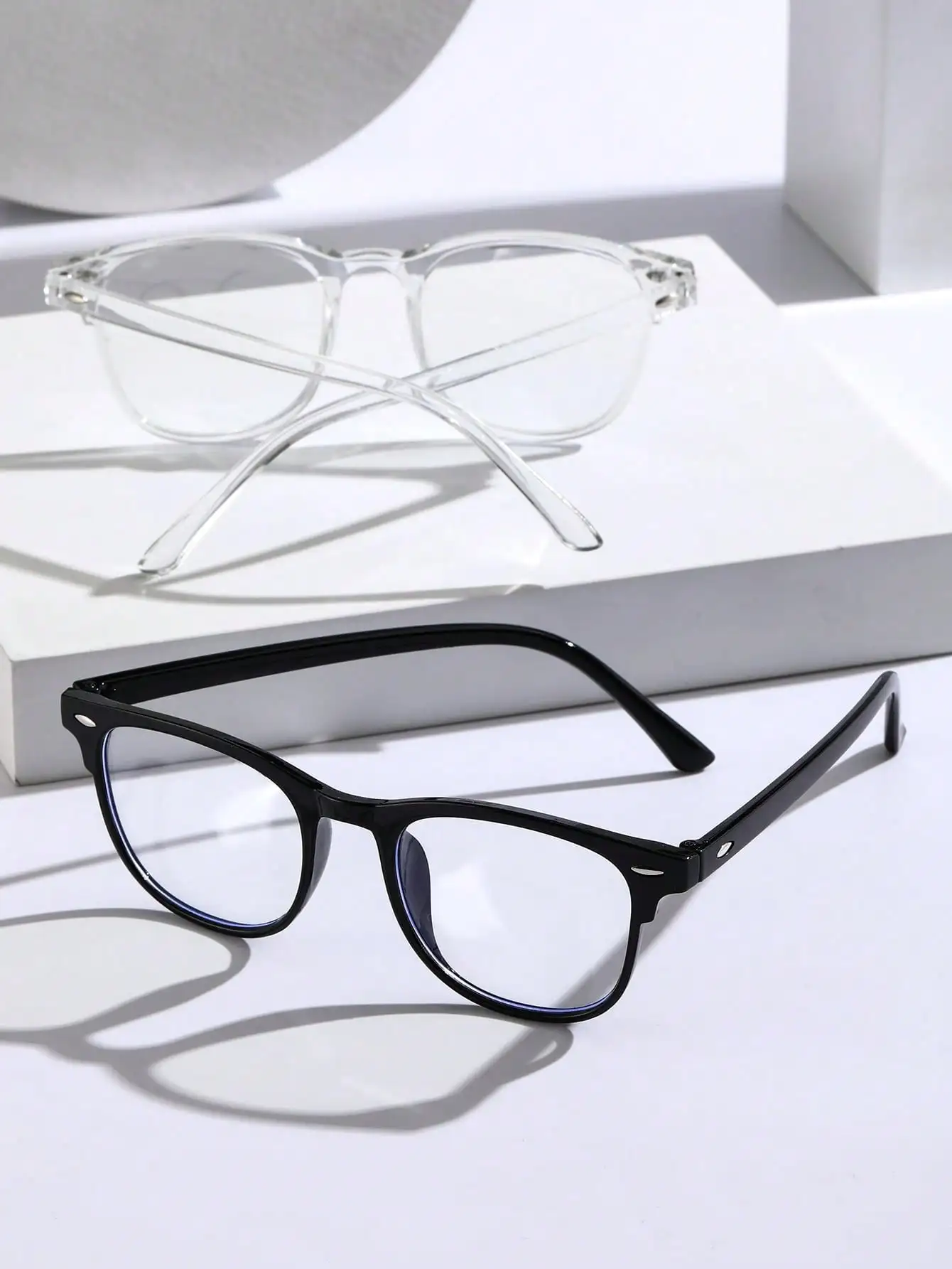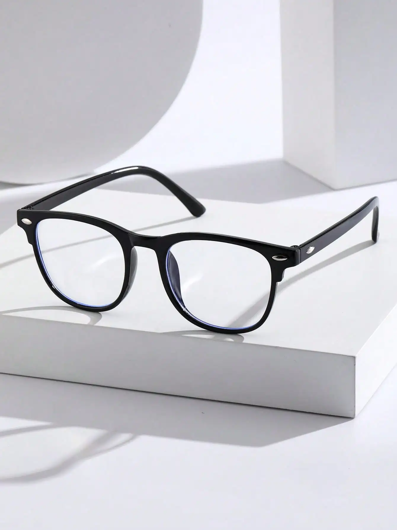 Trendy clear square glasses with anti-blue light protection. Perfect for school, office, and daily wear.