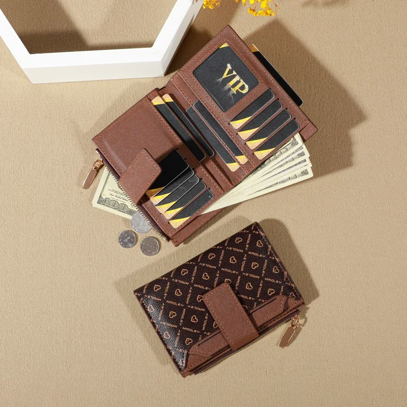 Portable and stylish wallet with multiple compartments for cards, cash, and coins.