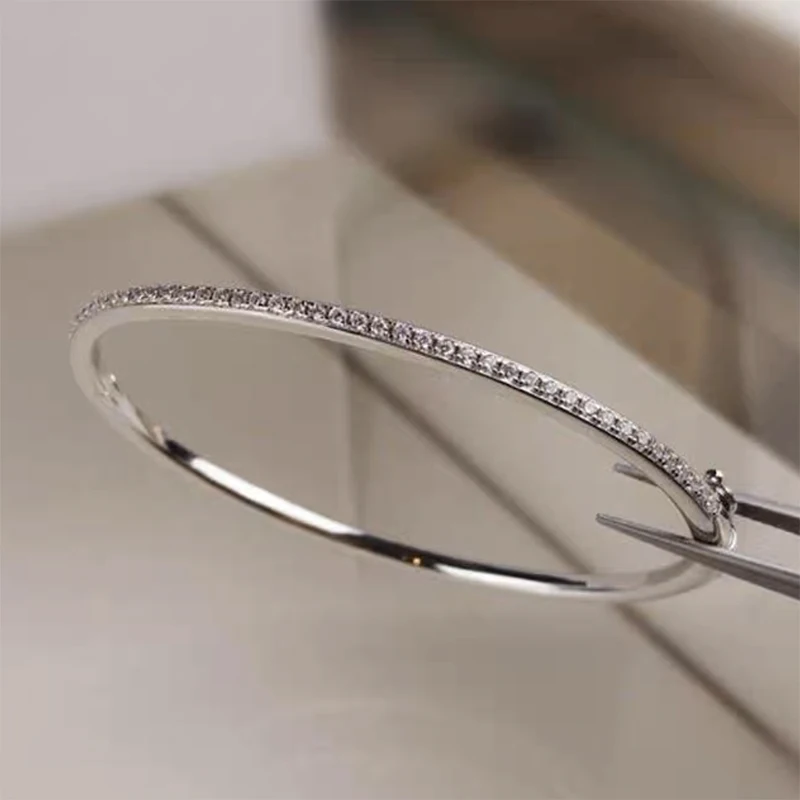 Elegant 925 sterling silver gold bangle with moving diamond accents, perfect for weddings and parties.